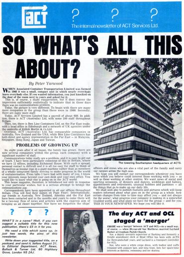 We have scanned the house journals from 1972 to 1991 when the company ceased to exist. It was formed by 5 British companies Ben Line, Blue Star Line, Cunard Line, Ellerman Line, Harrison Line.
